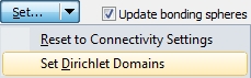 We now want to take the strongly interacting atoms from the Dirichlet domains and overwrite the bonding sphere boundaries that have originally been generated simply from effective (ionic) radii. We use the command "Set Dirichlet Domains", available from the menu activated by the dropdown arrow right beneath the "Set..." button: