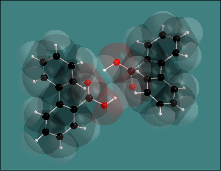 You may draw a space-filling model over the regular wire or ball-and-stick model. Normally transparency will be used for this overlaid model. To change the settings for a superimposition of a space-filling model, use the above described Model and Radii dialog.