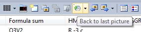"Picture 1" of #1252235 (VO2 in P4/ncc) is the last edited structure picture (when the document was saved), so at the beginning row for data set "1252235" is highlighted in the structure table, and the thumbnail of "1252235::Picture 1" appears at the top of the recent pictures list. Below (in this example) are the latest edited or viewed structure pictures: "Unit cell with PO4 polyhdra" and "Super cell 2x2x2 [...]" from "Na3PS4-10-pictures.diamdoc". These thumbnails show a different frame to indicate that the document is not open. And the frame color goes from green (for recently used pictures) to yellow-brownish for older pictures. When you now -- in that order -- click on the rows for PCD data sets #1252236, #1252234, #1250679, and #1250180 (so now "Picture 1" of #1250180, VO2 in C12/m1 is in picture edit view), the screen may look like this: To easily return to a recently viewed/edited picture, you can also use the sub-menu "Back To Picture" from the "View" menu or the drop-down menu from the main toolbar, as in the following screenshot. Please note: Both "Back To Picture" and drop-down menu only show the pictures viewed/edited during the current Diamond session. To switch easily between two pictures back and forth, directly click on the clock symbol with the green arrow left of the drop-down menu button. This feature can be used as a kind of flip-flop change between two important pictures in your multiple picture document.